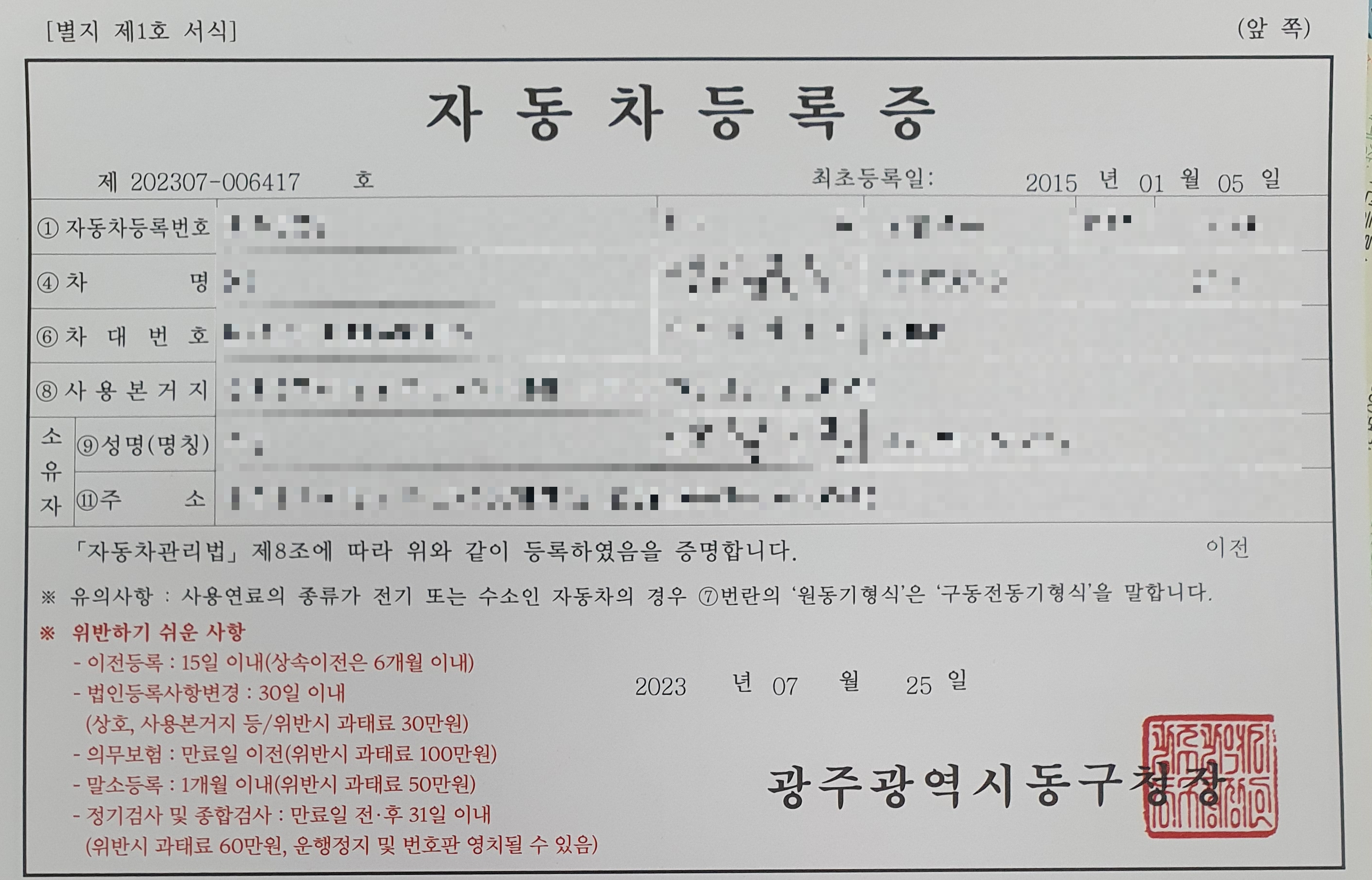 오늘은 지난달에 자동차 명의 이전했던 내용에 대해 기록을 남겨보겠습니다.
