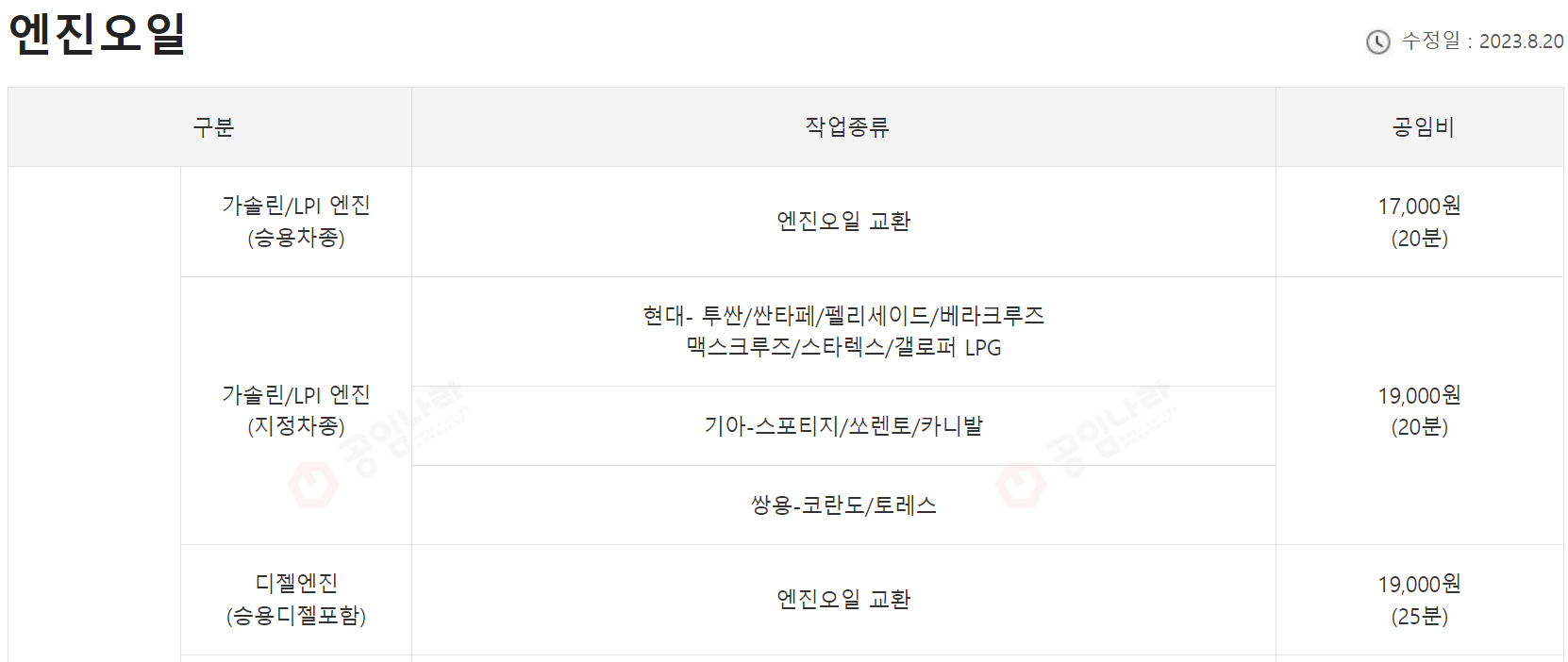 지금까지 공임나라 엔진오일 교체 후기였습니다.