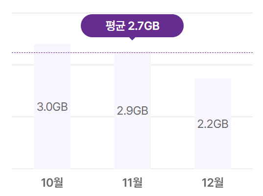 평균 사용량 : 데이터 2.7GB / 음성 141분 / 문자 320원