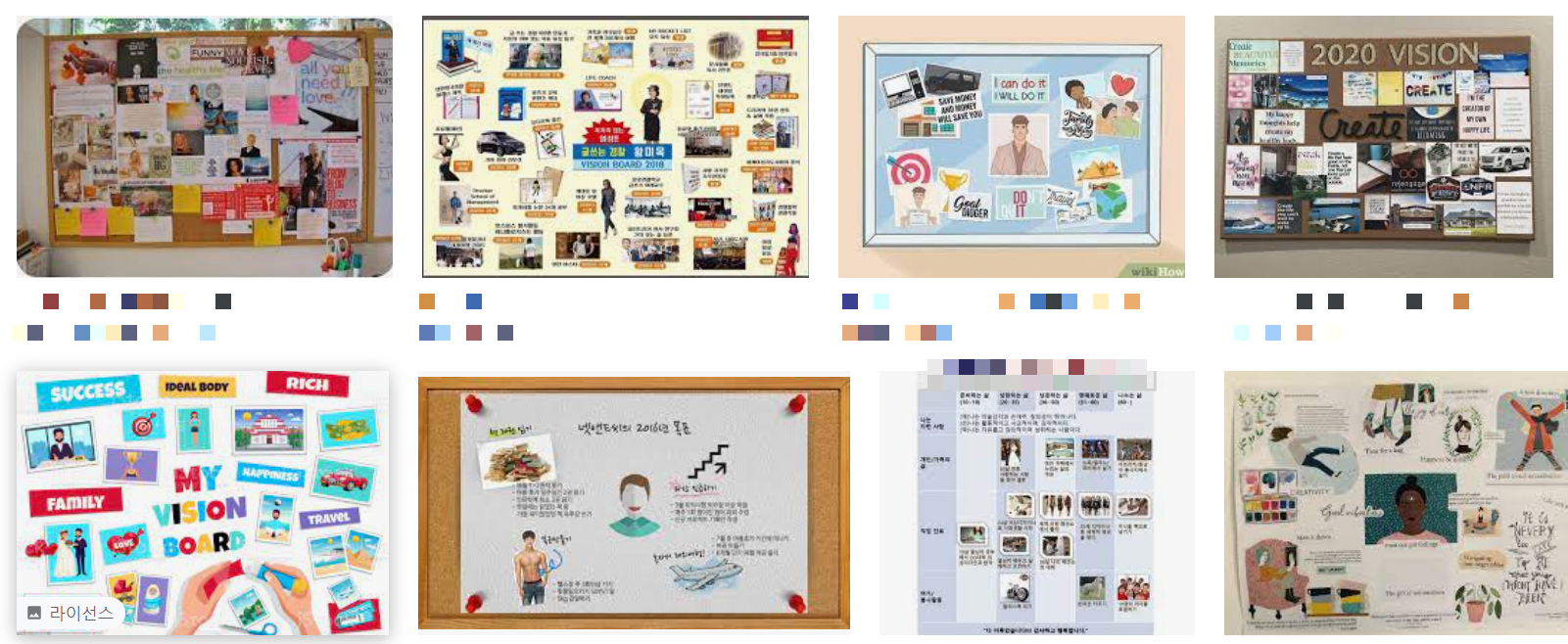 구글 이미지 검색등으로 자신이 원하는 이미지를 수집한다. 자신이 생각하는 미래상과 가장 근접한 이미지를 찾는다. 구체적이면 구체적일수록 시각화하기에 용이하다.