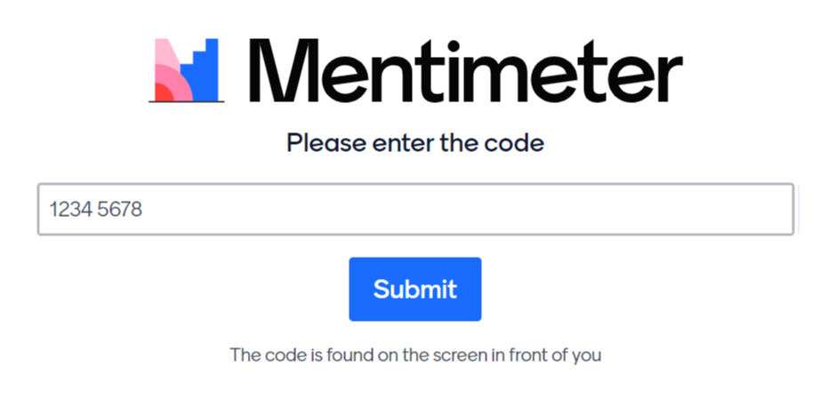 참가자(학생)들은 www.menti.com 으로 접속하고 코드 번호를 입력하여 설문에 참가한다.