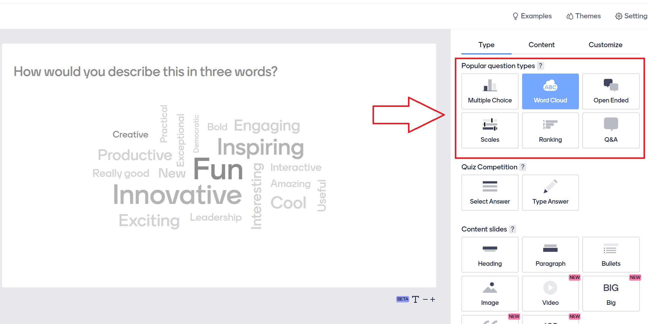 오른쪽 상단 Type에서 설문의 성격에 따라 어울리는 양식을 선택한다. (예시 : Word Cloud)