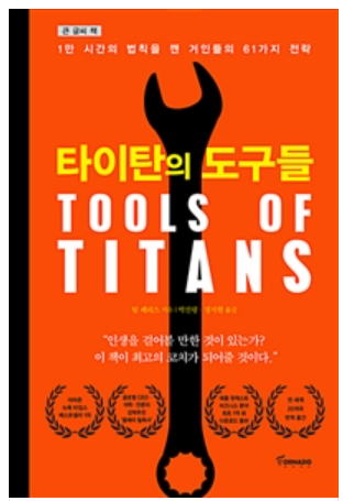 수십가지의 타이탄의 도구들을 다루다보니 깊이 있게 독자를 설득하는 맛은 없다. 내게도 공감이 되지 않은 성공 비법이 많았다. 아마도 아직 그 부분에 대해서 잘 알지 못하기 때문일 것이다. 언젠가 다시 읽는다면 더 많은 타이탄의 도구들을 이해할 수 있길 바란다.