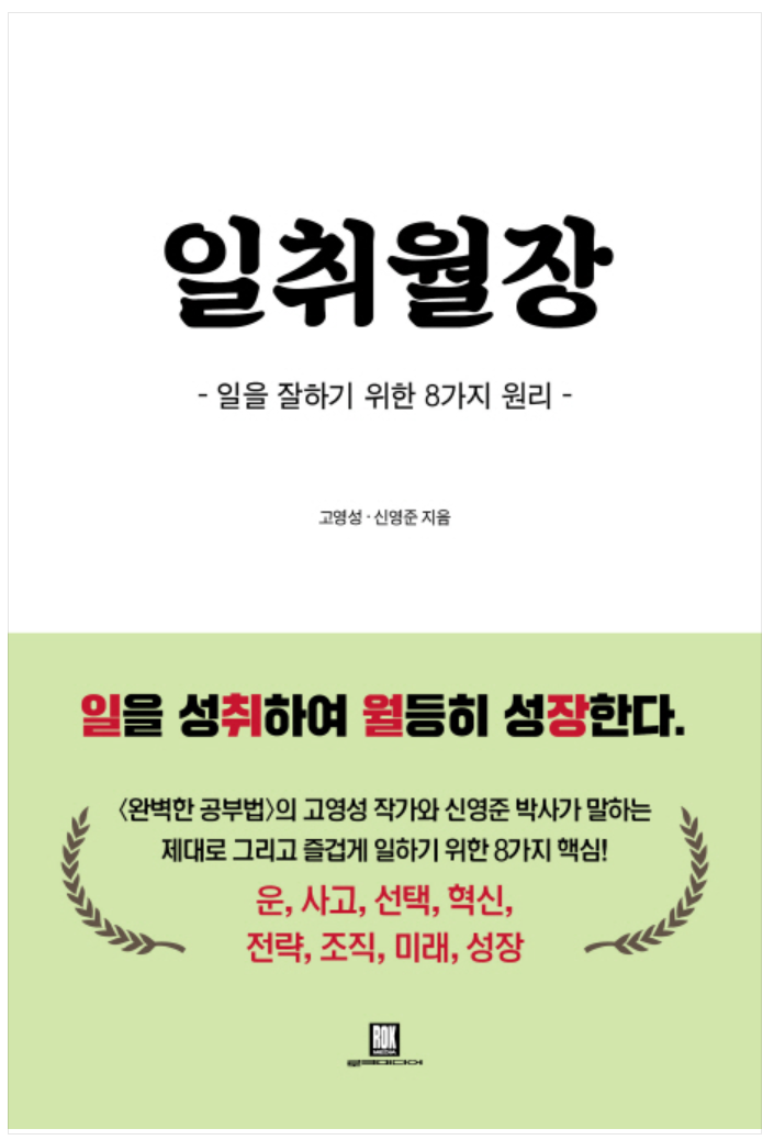생애 절반을 함께하는 ‘일’을 제대로 즐겁게 하며 성장하고 싶은 분들에게일의 8가지 핵심 원리를 알고, 일을 성취하여 월등히 성장한다《완벽한 공부법》과 ‘일을 잘하고 싶은 마음’ 전작